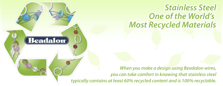 When you make a design using Beadalon, you can take comfort in knowing that stainless steel is one of the world’s most recycled materials (more than paper or glass) and that we have contributed in our small way to this success story.